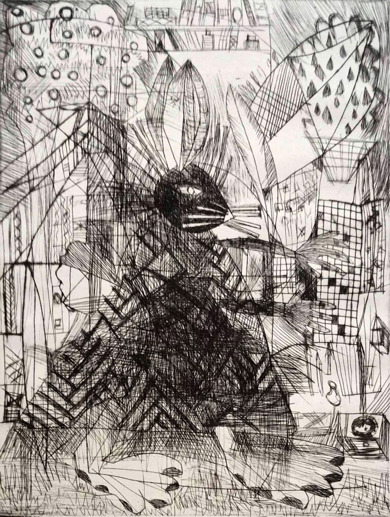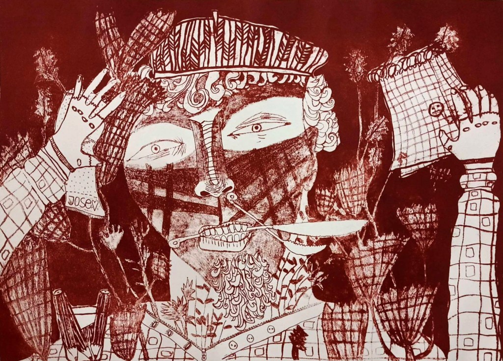 Take me from school, stone lithograph, 2014, 30×20 cmLove works in mysterious ways, stone lithograph, 2014, 37×55 cmJose has a psychosis with plants, brown variation, stone lithograph, 2014, 40x55cmFigure I, collagraph, 2017, 36×20 cmUntitled, collagraph, 2017, 52×38 cmBirthday, drypoint on plexiglas, 2013, 35×50 cmRabbit, drypoint on plexiglas, 2012, 20×15 cmUntitled, monoprint – drypoint on plexiglas, 2012, 20×15 cmUntitled, drypoint on plexiglas, 2010, 20×15 cmBlackmail, drypoint on plexiglas, 2020, 20×15 cm