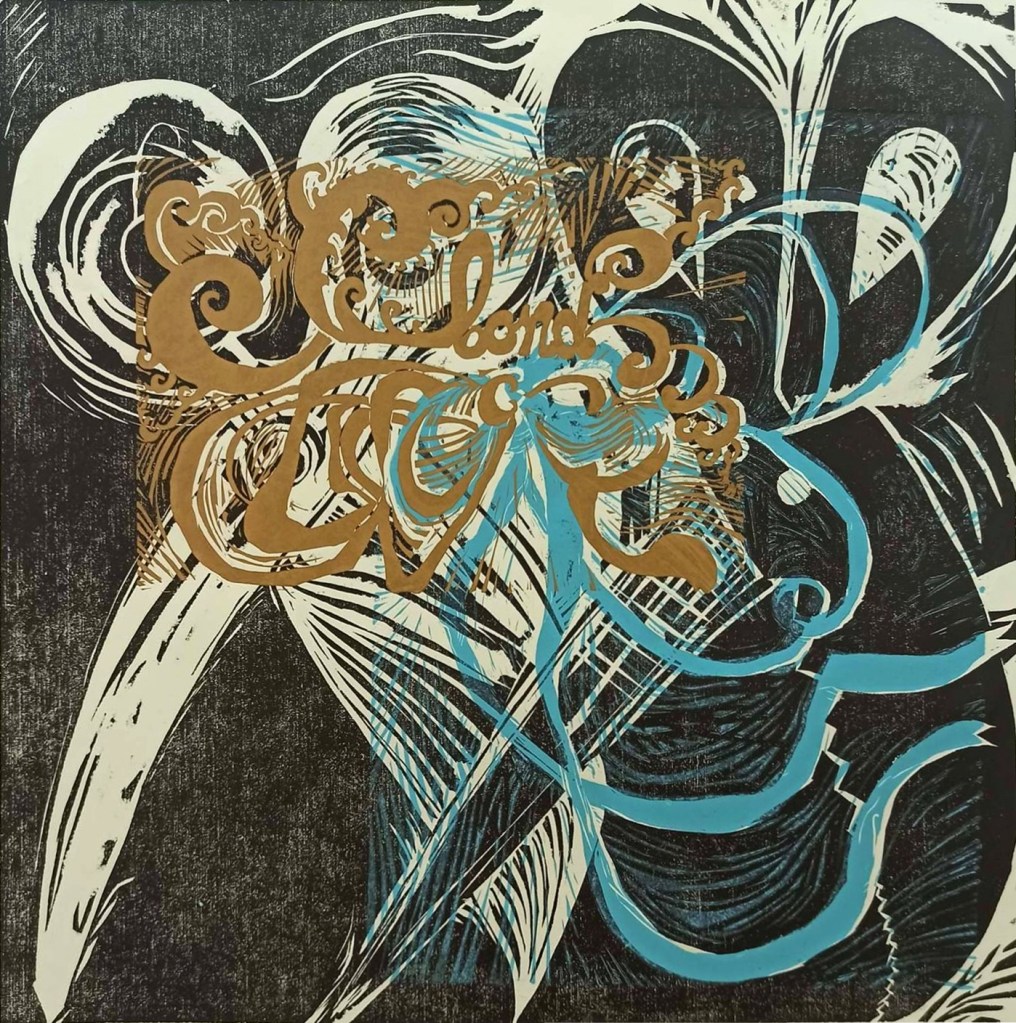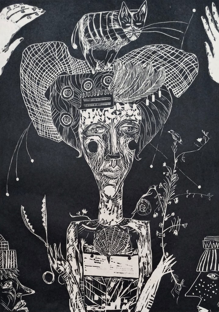 three-plate relief print (woodcut and linocut), 2020, 50×50 cm